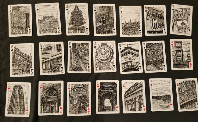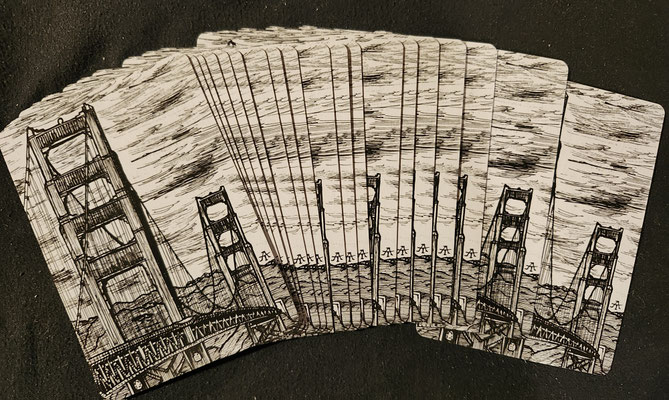 This deck features 52 drawings of famous landmarks and neighborhood places in SF. Includes: Alcatraz, SF MOMA, City Lights Bookstore, Four Barrel Coffee, the Ferry Building, Golden Gate Bridge, Coit Tower and more. With an artist statement and index.